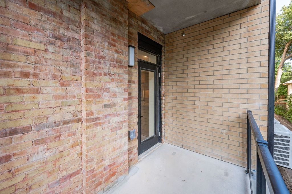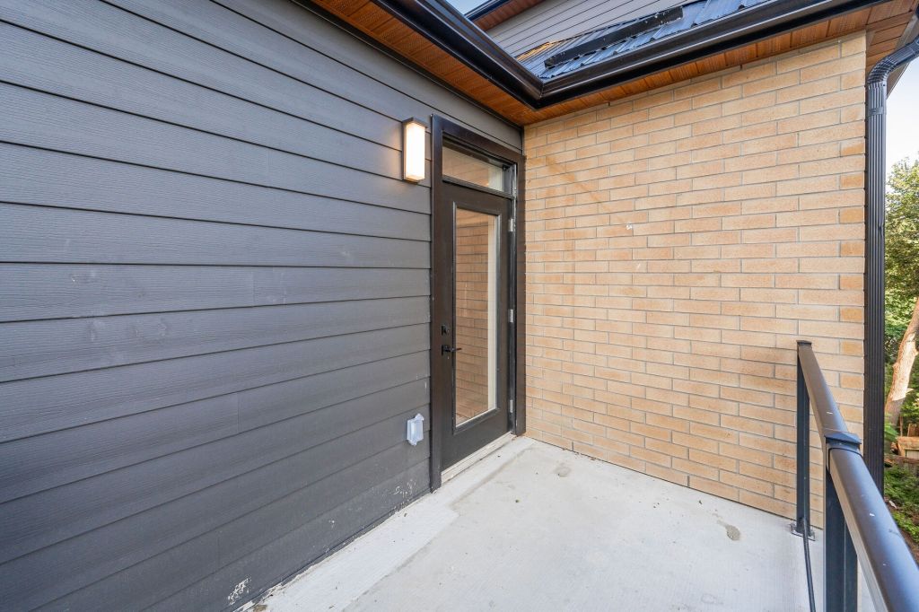 This 15-unit, multi-residential building retains most of the original Stroh house. Designed by EDGE Architects, the contemporary addition uses modern, contrasting materials such as siding, concrete, and glass, but in a neutral colour palette to complement the brick and stone of the existing house. Angled rooflines of the new addition have been designed to blend with the gable rooflines of the Stroh house, while fascia and glass features will span both the old and new structures to tie them together. The same approach of melding old with new is proposed for the interior units, where reclaimed local barn boards and original brick for selected walls and entrances will visually connect the contemporary addition to the original Stroh building.